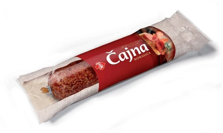 Tilltuggskorv. Passar bra som tilltugg eller meze. - Ingredienser: fläskkött, bindväv från fläsk, salt, kryddextrakt, fläskprotein, vegetabiliska fibrer, stärkelse, dextros, rökarom, stabiliseringsmedel E450, antioxidanter E301, konserveringsmedel E250 och E251. Höljet är oätbart.